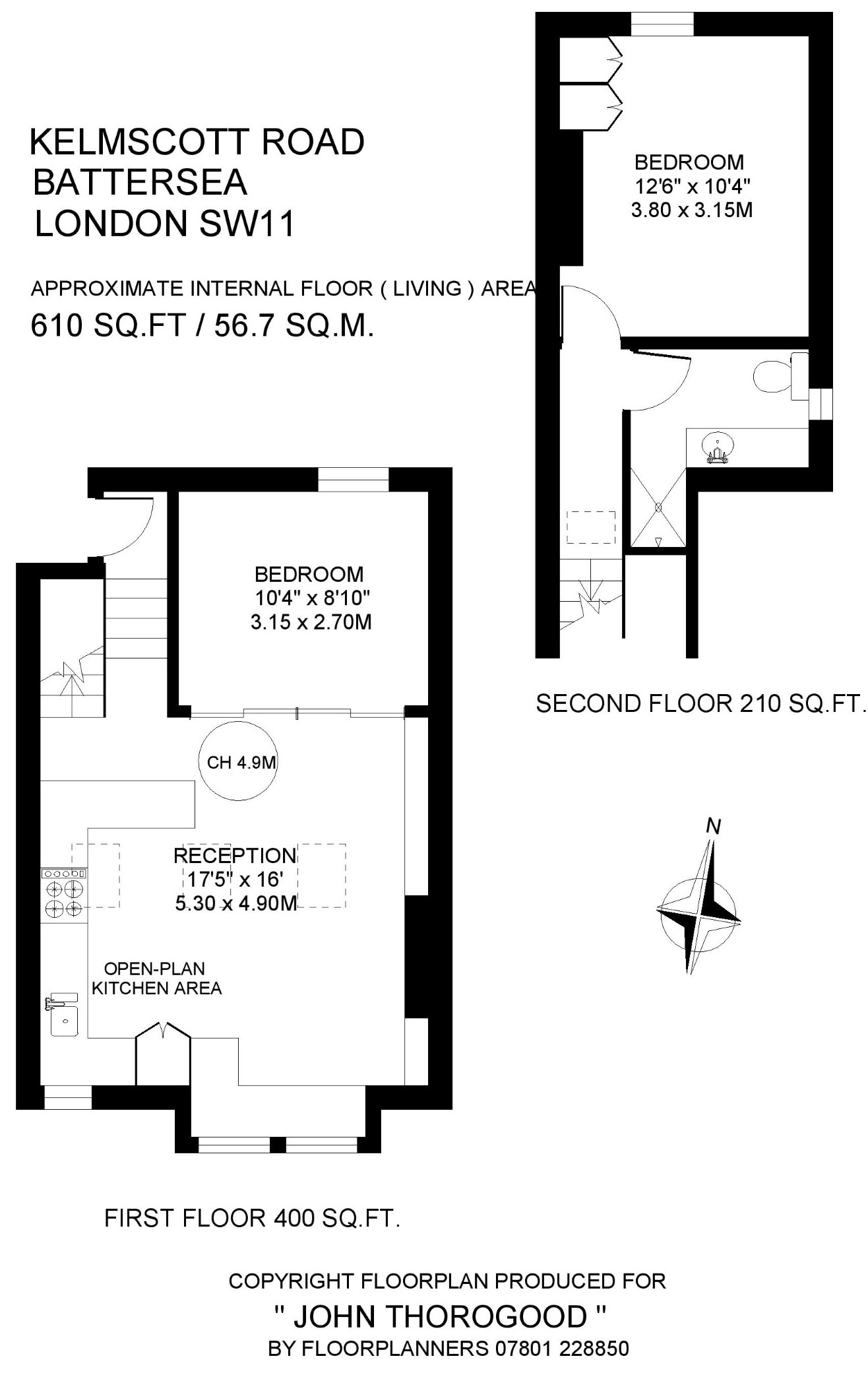 This light and spacious upper maisonette is arranged over two floors and is converted from an elegant Victorian end-of-terrace house in a quiet road Between Wandsworth and Clapham Commons. It has been newly refurbished throughout with a stylish, top-quality, contemporary finish and new sash double-glazing throughout. Beautifully appointed, it would suit either a couple or single person very well. It has superb living/entertaining space consisting of a smart, new and well-equipped kitchen with marble worktops, open-plan to a funky reception room with large bay window and double-height, vaulted ceiling with further skylights. A wall of Crittall-style glass, with large central doors, separates the living area from a wonderfully bright office (which can also serve as bedroom 2). Lovely oak flooring runs throughout both spaces.