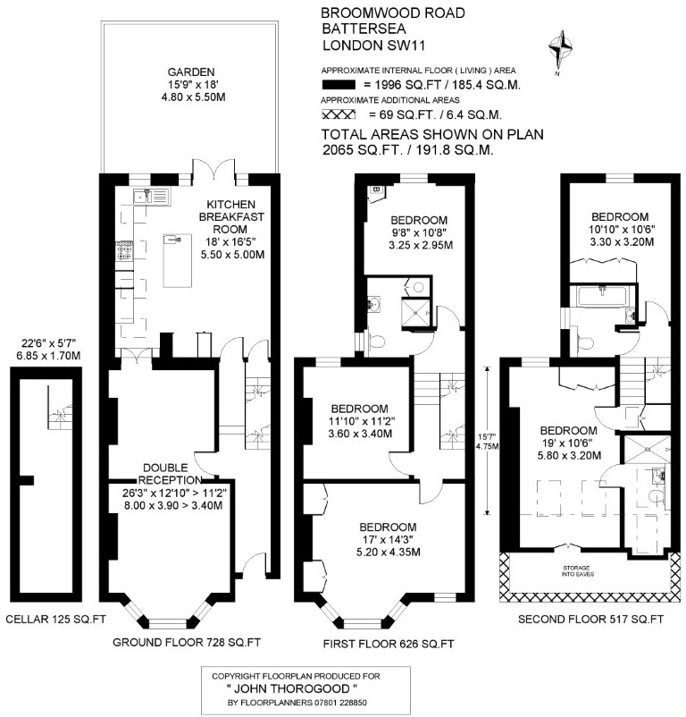 Broomwood Road is in the heart of the area known as ‘Between the Commons’. It is within easy access of excellent schools in both the state and private sectors. Transport into the City and the West End is via nearby Clapham South (Underground) and Clapham Junction (British Rail) and the area is also well served by buses. Clapham Common with its tennis courts, football pitches and playgrounds is at the end of the road, Wandsworth Common a little further and there is excellent dining, drinking and shopping to be had on Northcote Road, about 400m away.